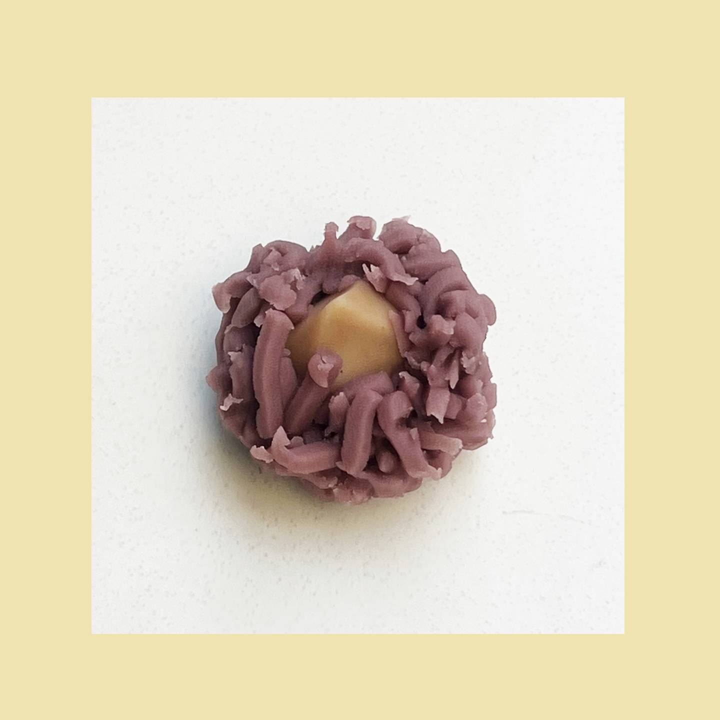 5種類のお菓子と干菓子 材料には特にできる限り国産にこだわって、 不要なものは加えず、シンプルな材料で、 一つ一つ丁寧に作っております。 ※内容は毎月変わります。 きんとん製(キントン): 薯蕷、寒天が入った餡でできています。水分の多い餡の為、とてもやわらかく懐紙に滲むほどです。 材料:きんとん 栗餡 特定原材料28品目:なし