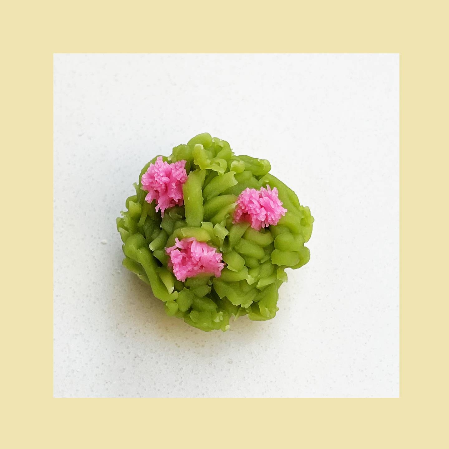 5種類のお菓子と干菓子 材料には特にできる限り国産にこだわって、 不要なものは加えず、シンプルな材料で、 一つ一つ丁寧に作っております。 ※内容は毎月変わります。 きんとん製(キントン): 薯蕷、寒天が入った餡でできています。水分の多い餡の為、とてもやわらかく懐紙に滲むほどです。 材料:きんとん つぶ餡 特定原材料28品目:なし
